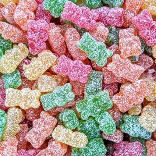Fruit Flavour gummy sweets - Ingredients; sugar, glucose syrup, beef gelatine, modified corn starch, apple juice concentrate, acid (citric acid, ma...