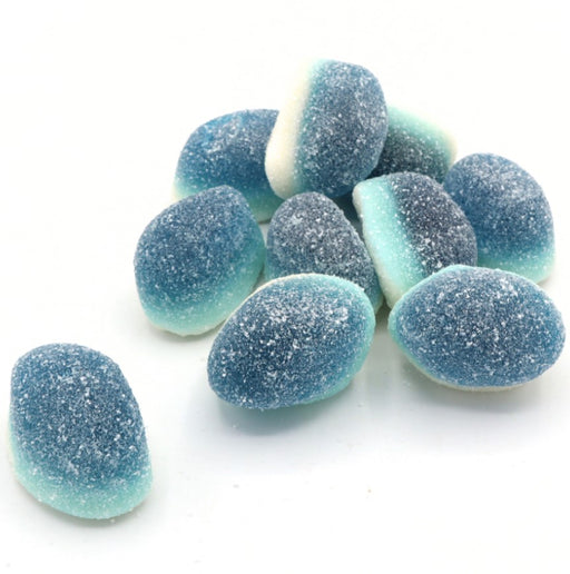 Fizzy Blue Raspberry Bites, sweet and sour taste with a raspberry flavoured outer, delicious cream centre, coated in sour sugar., Ingredients; Suga...