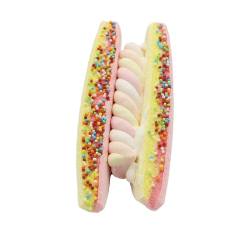 Mallow Sandwich Ingredients - Glucose Syrup, Sugar, Dextrose, Water, Beef Gelatine, Corn Starch, Flavourings, Colours (E129, E110, E133, E102) Warn...